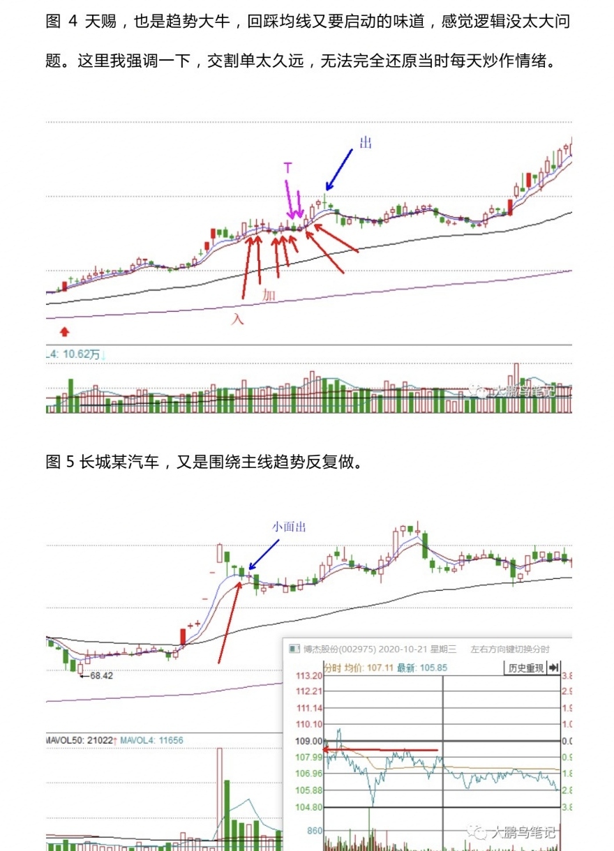 以下几张图解,比较体现了列夫围绕趋势做的思路,有在趋势上做小波段,也有在趋势上做隔日操作不但是白马趋势票,也有炒作题材走