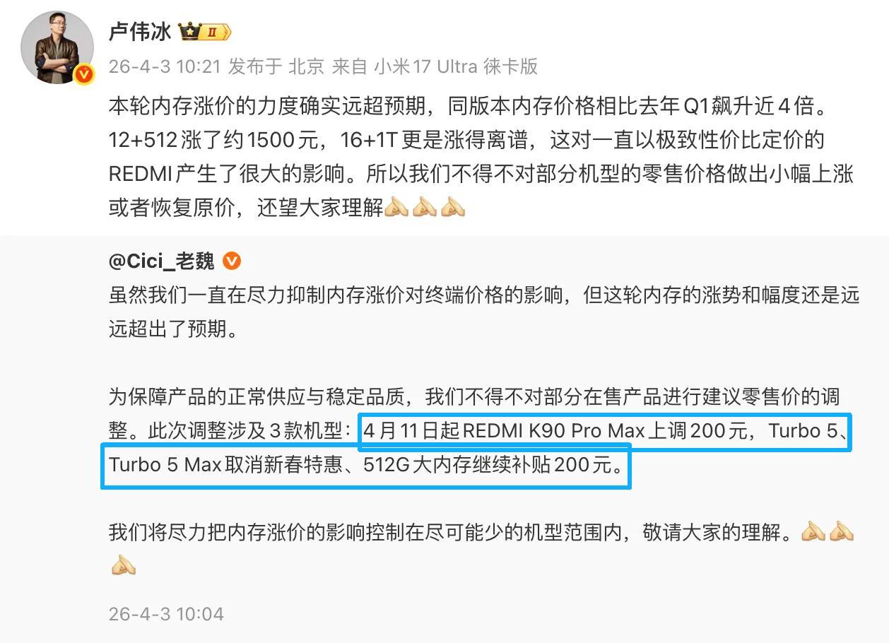 总的来说,小米17系列没涨价,甚至小米17三个版本依然保留之前的200元补贴。而REDMI这边就涨价了一款机型(涨200),取消补贴了两款机型(涨300),对比友商,这次调整幅度比较小,算是目前已经调价的几个品牌中最为保守的一家。