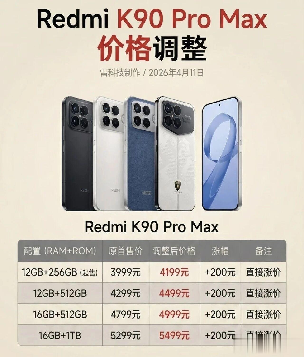 一、K90 Pro Max全系涨价200,16+512G和16+1T这样的大存储版本也才涨价200,对比其他品牌这个幅度确实不大,属于“微调”。