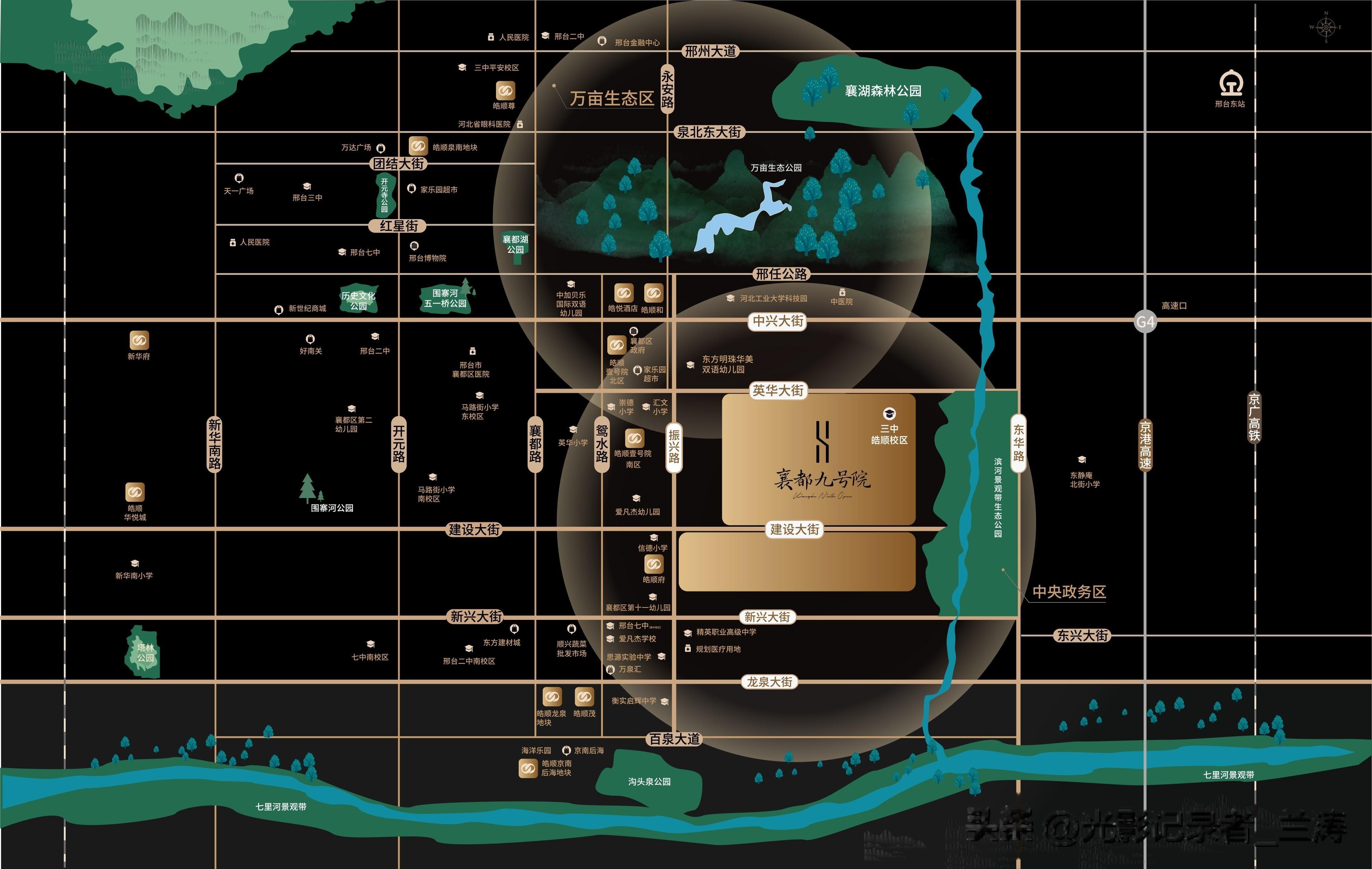 作为皓顺集团十五载匠心升级之作,襄都九号院占位邢台向东发展核心阵地,坐拥 “9 纵 9 横” 立体交通、成熟商圈、优质医疗与生态公园,以约40 万方全能大盘体量,打造集低密、舒适、便捷于一体的纯改善住区。项目规划38 栋小高层与低密洋房,容积率仅 2.3,绿化率高达 35%,户型覆盖 125-220㎡改善尺度,空间开阔、尺度奢适,兼顾家庭成长与居住质感。社区以新中式园林为基底,打造 “一环两轴两核多园” 景观格局,搭配三重精装大堂、六重归家礼序、13 米恢弘社区大门,将仪式感融入日常出入。