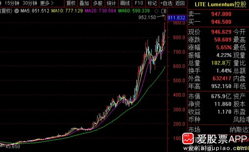 盘后最新消息,摩根大通上调美股AI光通信龙头Lumentum的目标价,从565美元大幅上调至950美元。