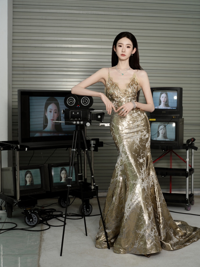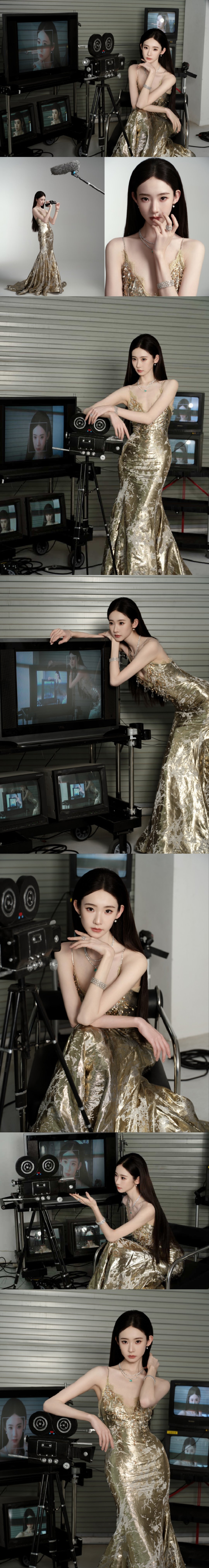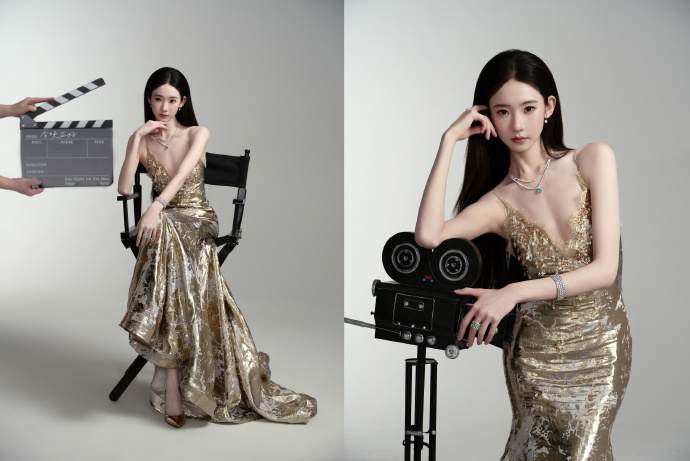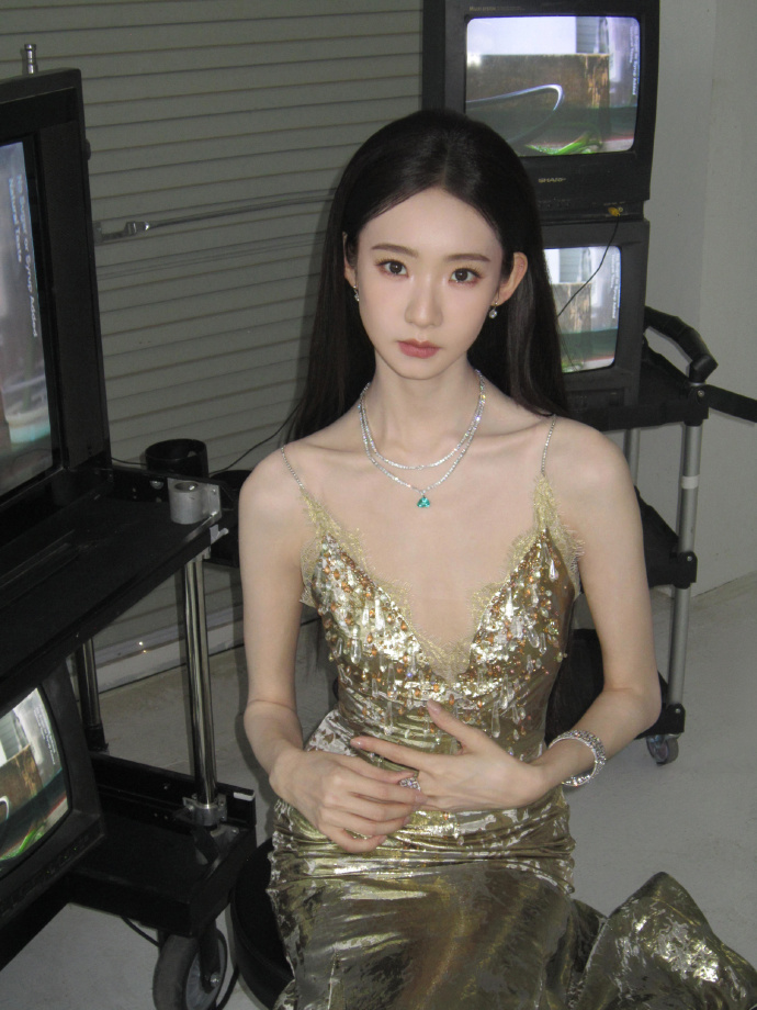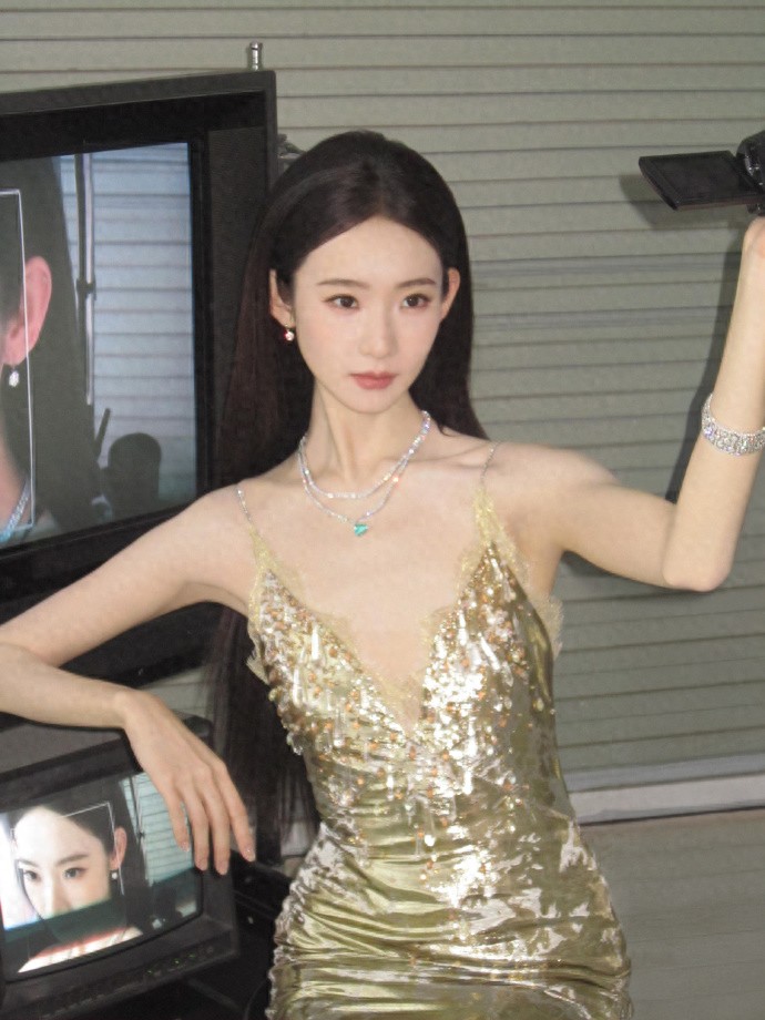 张艺凡穿着金色小吊带裙写真,又飒又酷的黑长直御姐