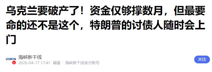 海峡新干线:乌克兰要破产了!资金仅够撑数月,但最要命的还不是这个,特朗普的讨债人随时会上门
