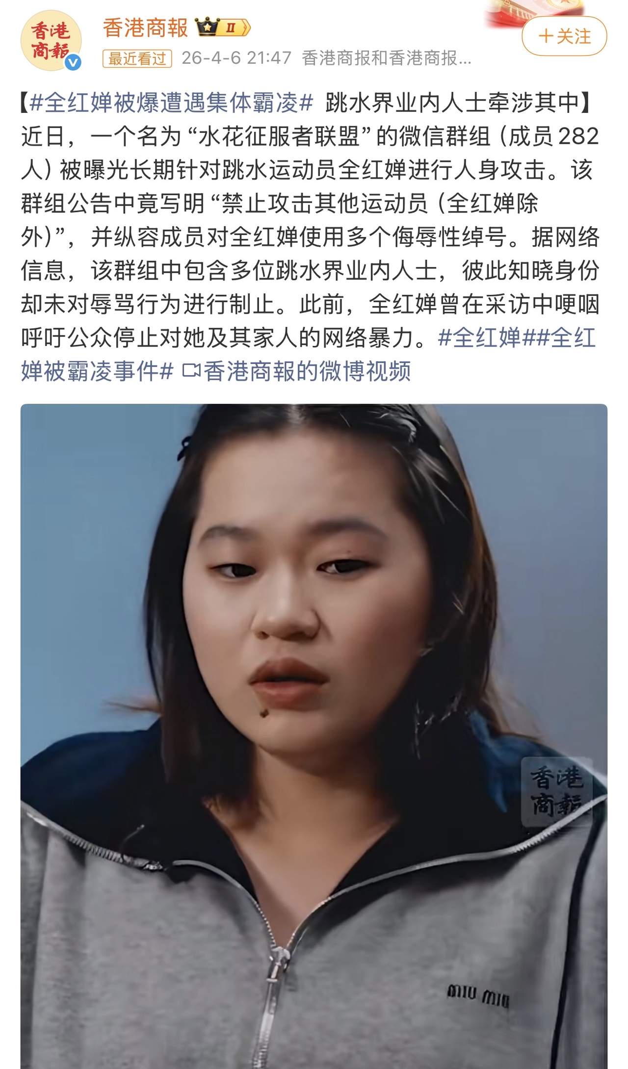 3知情人透露,这个282人的群里,混入了不少跳水圈内部人士:有现役的跳水运动员,平时和全红婵一起训练、称姐妹,表面关系亲密,私下却在群里跟着辱骂;有退役的跳水名将,本该是后辈的榜样,却参与到恶意攻击中;有某台的专项记者,本该客观报道赛事,却沦为恶意传播的一员;还有国际裁判,本该维护体育公平,却默许这种恶意行为,