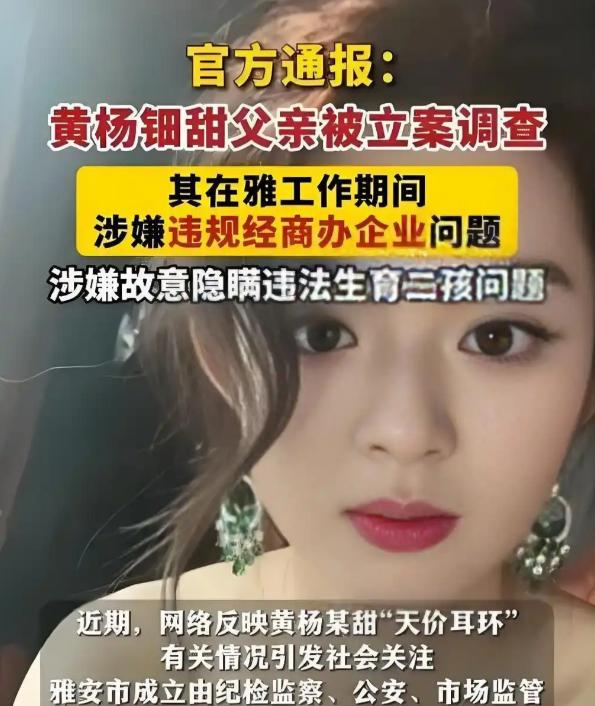黄杨钿甜删除百万耳环照片,其父此前被立案调查.九派新闻