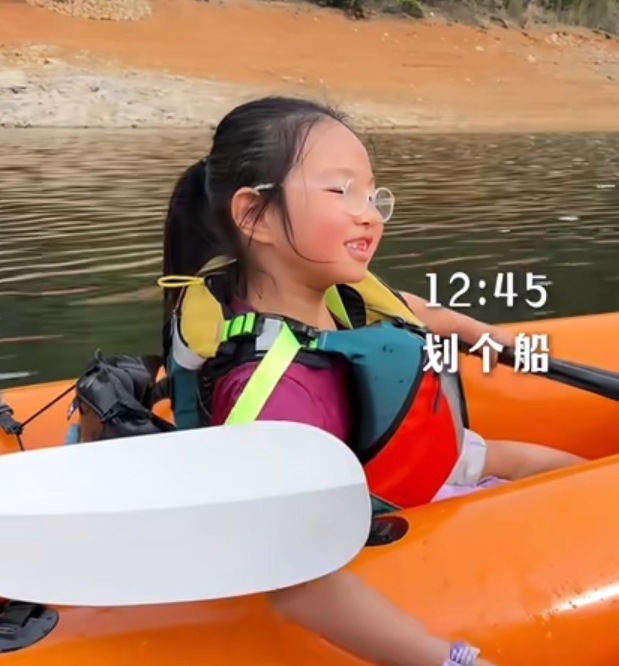 之后朱丹和周一围还带着孩子们去划了船,朱丹带着弟弟,周一围带着女儿念念,念念现在八岁,正是到了换牙期,两颗大门牙全都掉了,看着又好笑又可爱。