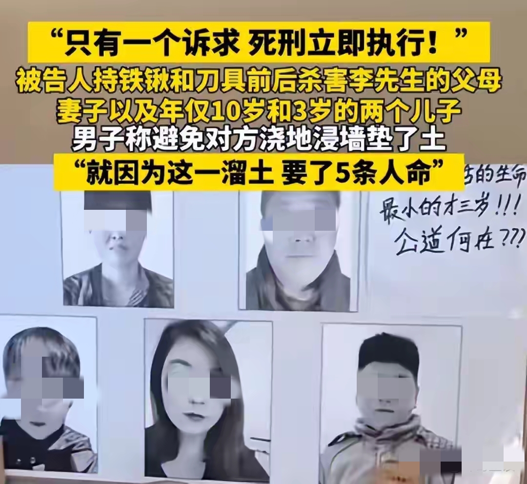 一、事情经过:一小时不到一家5口人被残忍杀害事情发生在2025年6月22日凌晨5点多,河北邢台市隆尧县一村庄农田里,范某奇在干活时与邻居李某强发生争执,范某奇持铁锹将李某强拍倒后又继续拍打李某强头部,然后用随身携带的刀子捅了李某强数下,导致他当场死亡。