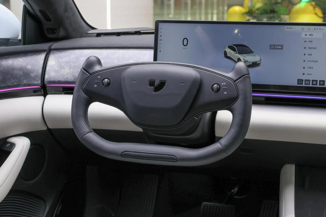 极越01和07采用的是更激进的U型设计,同时还彻底取消了转向柱上的所有物理拨杆。