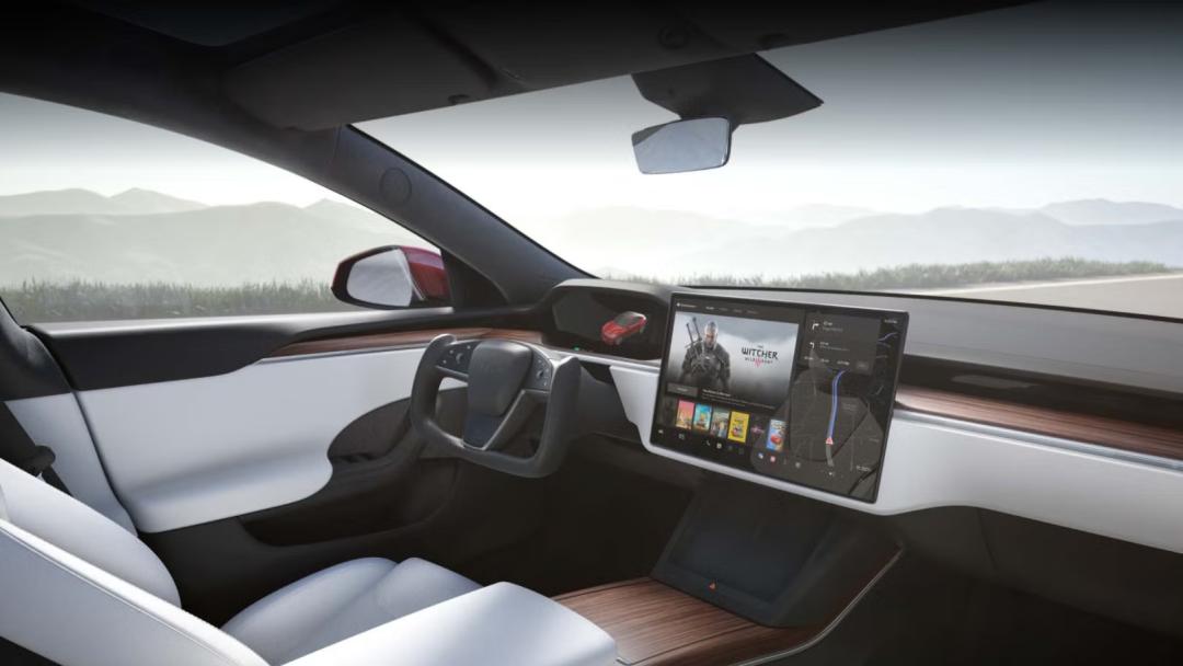 2021年最早在Model S/X Plaid上的版本和极越类似,更像是一个“半成品”。转向灯、雨刮都被塞进了触控按键,甚至连喇叭都变成了触控。