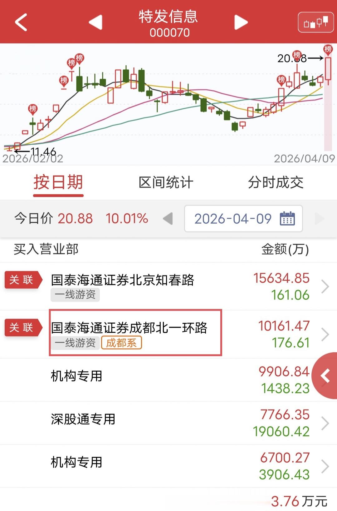 周四特发信息盘中涨停。盘后龙虎榜显示,成都系买入1个亿。最近很少看到成都系这么大的手笔。