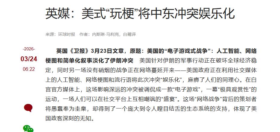 让很多人觉得“美军打仗很酷”,却忽略了废墟底下的无辜生命。这种“低成本、高传播”的线上包装,比线下时代的舆论操控,更具迷惑性。