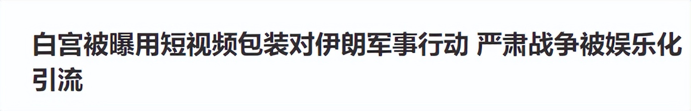 第三步,玩转线上流量,把战争“娱乐化”。这是白宫最新的玩法,也是最具迷惑性的一招。《华尔街日报》核查发现,美伊冲突爆发以来,白宫在社交媒体上发布的100多条相关视频,几乎都是精心包装的“传播产品”——