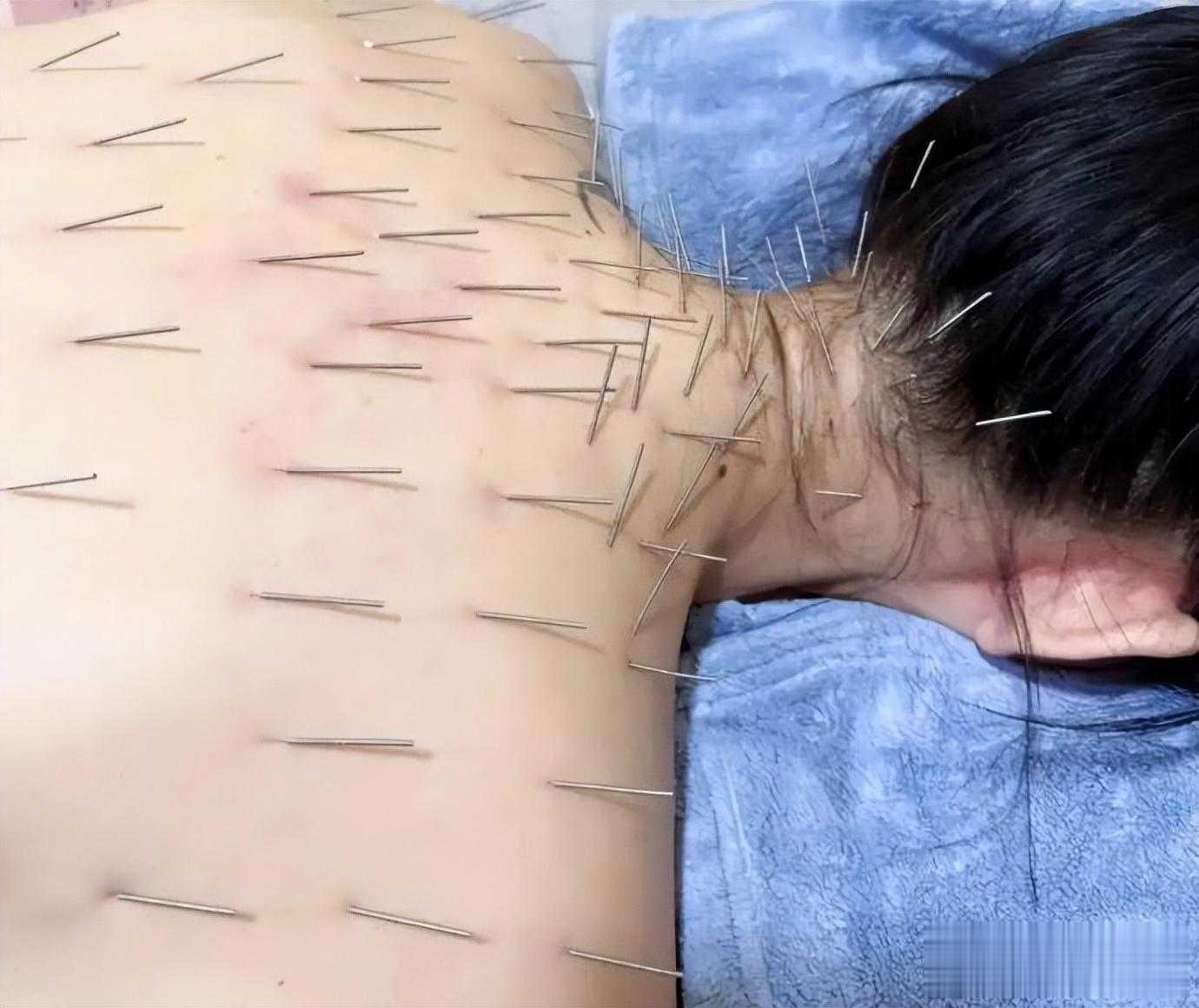 这还不算完,接下来的几张照片更是让人既惊恐又心疼,只见陈乔恩的后脖颈、后背、肩膀、小腿以及脚面上,全都被扎上了针,目测至少得有百十根。不仅如此,陈乔恩在做针雕保养的同时,还一边做着艾灸。可见,看似柔弱的她,为了驻颜也真的是拼了。