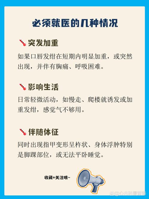 医生提醒,区分生理性和病理性嘴唇发紫,关键看三点:一是持续时间,病理性紫绀会长期存在,不会因保暖、休息消失;二是伴随症状,若同时出现胸闷、气短、乏力、头晕、手指发紫等,大概率是病理问题;三是突发变化,原本唇色正常,突然变紫发黑,必须立即就医 。尤其像吴先生这样,没有任何自觉症状,但唇色长期异常的情况,更不能掉以轻心——很多心脏疾病、肺部疾病,早期都是“无症状发作”,等出现疼痛、呼吸困难时,往往已到严重阶段 。