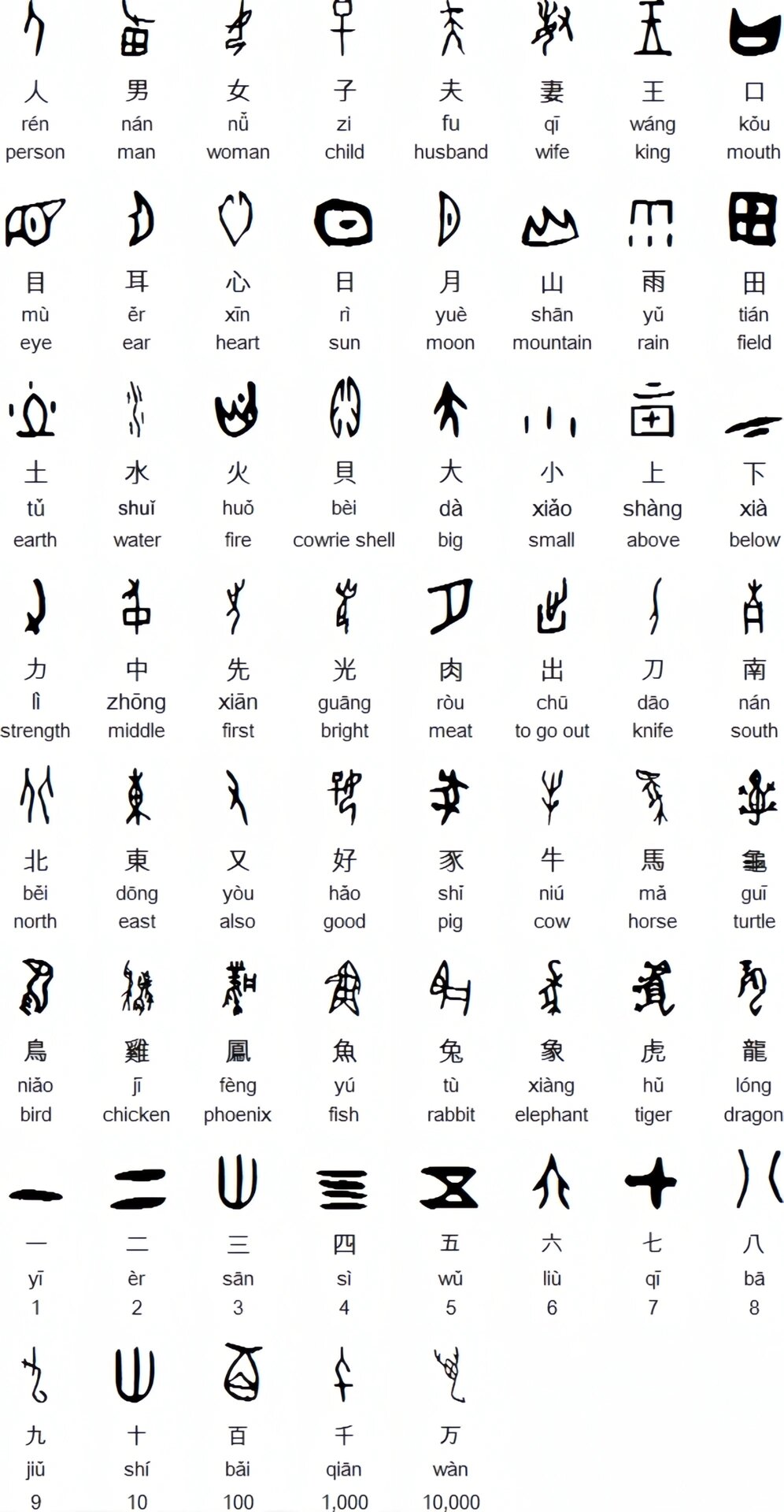 甲骨文的造字方式很有趣,以“象形”为主,看着像图画。比如“日”字像个圆太阳,“月”字像弯月亮,“人”字就是侧身站立的模样,笔画刚劲、线条利落,既有古朴的图画感,又藏着汉字书法的源头。