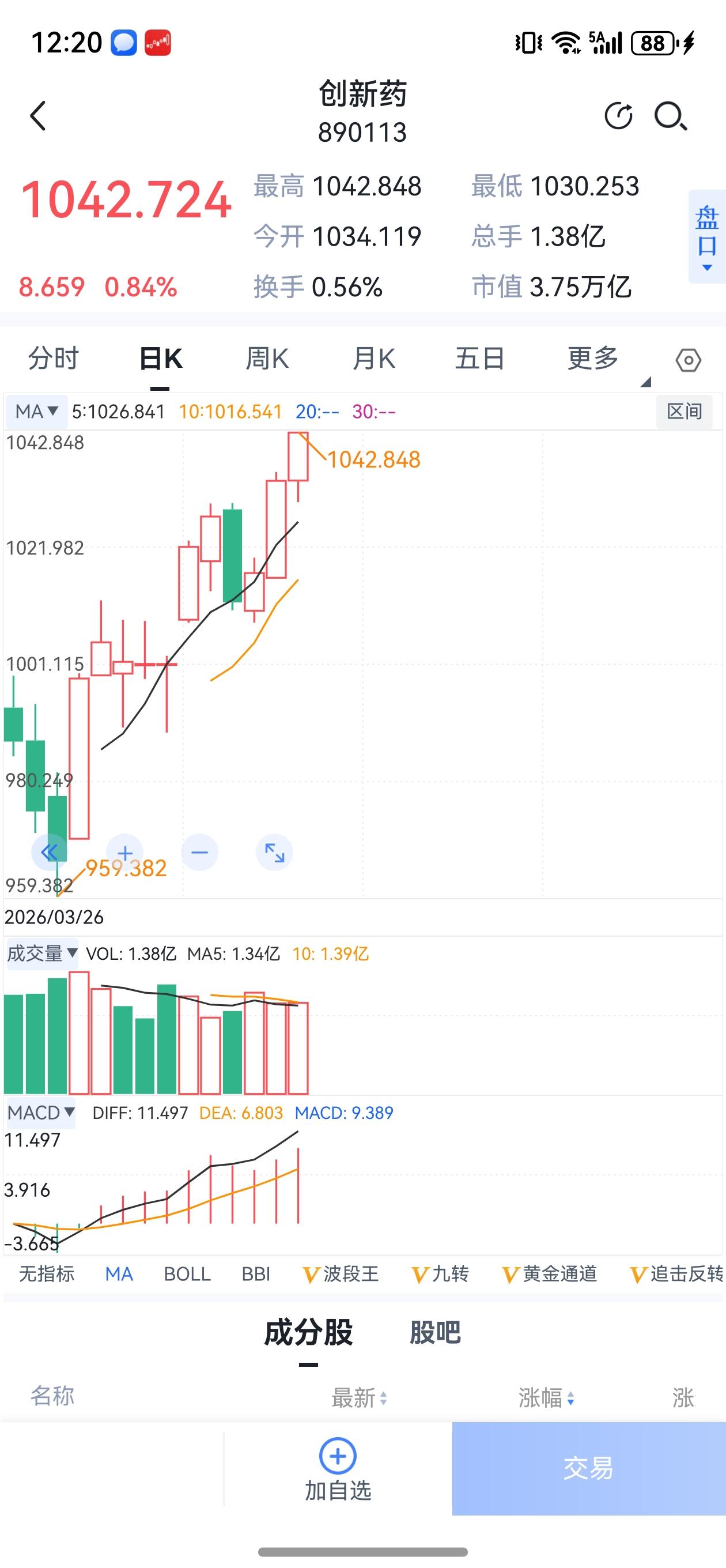 受消息利好刺激,A股创新药板块,创新药指数,集体异动,博瑞医药,哈药股份,康恩贝,益佰别药等多只个股涨停。