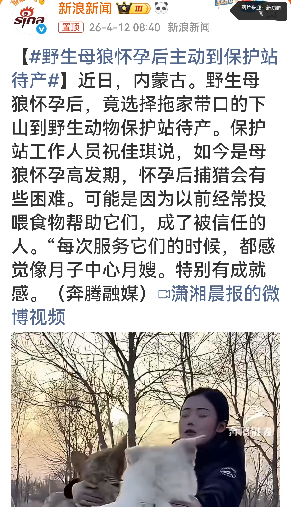 #野生母狼主动到保护站待产 #人与自然和谐共生 #暖心热点 #动物的信任有多珍贵 #治愈系新闻