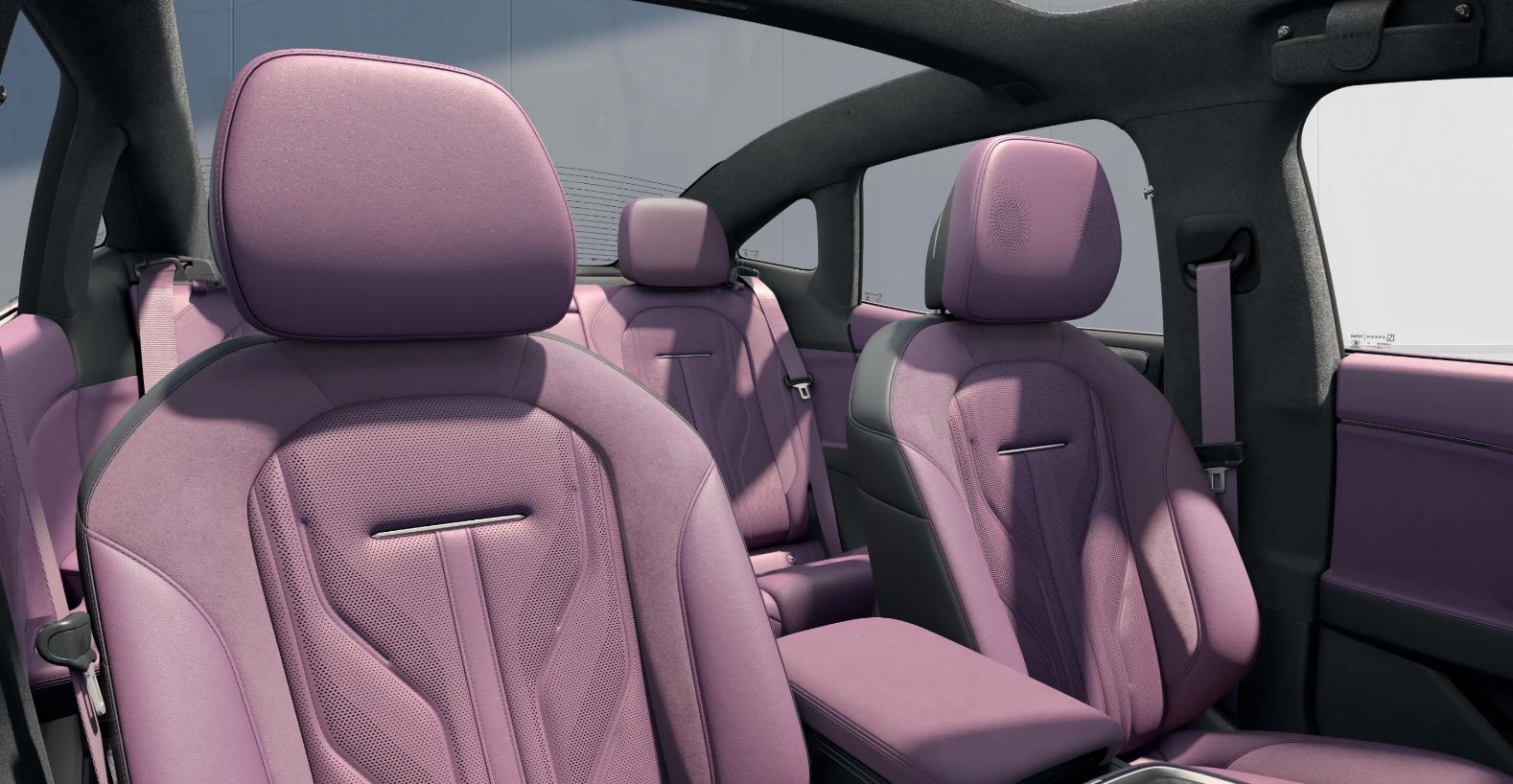 至于内饰设计,亮点并不少,有着分段式的大天窗,15.4英寸的中控屏,内置的是最新一代的高通骁龙8295的芯片。除此之外,真皮方向盘,全液晶的行车电脑,35.5英寸HUD数字抬头显示功能,翻毛皮的座椅等设计几乎是一应俱全的。