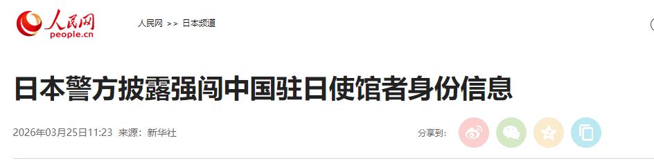 人民网:日本警方披露强闯中国驻日使馆者身份信息
