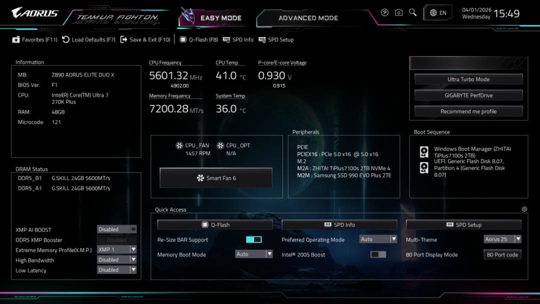 综合来看,技嘉Z890小雕DUO X主板不仅采用了高规格用料,更搭载D5 Duo X、Ultra Turbo Mode黑科技,在做工用料、功能配置与接口扩展上毫无短板。无论是轻松驾驭酷睿Ultra 200S Plus这类高端处理器,还是满足用户在存储、影音和网络等方面的需求,它都能给出完美答卷,是中高端Z890 Plus主板中的更优方案。