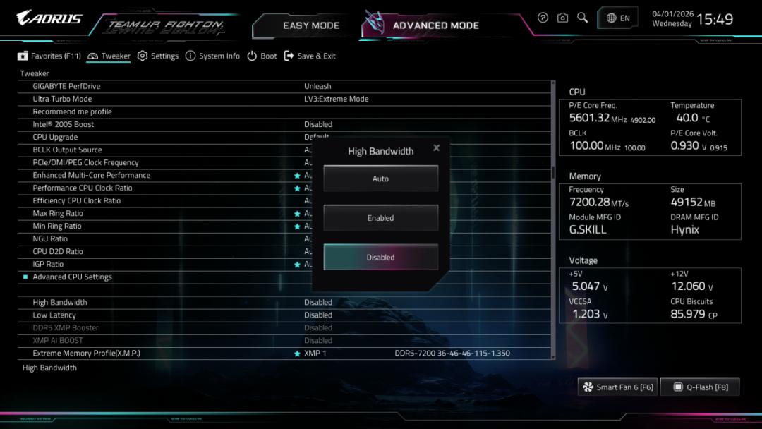 此外,技嘉还在该主板BIOS中内置了独有的“高频宽优化”黑科技,用户无须复杂调试,一键开启即可大幅提升内存带宽、降低延迟,轻松解锁内存性能潜力。