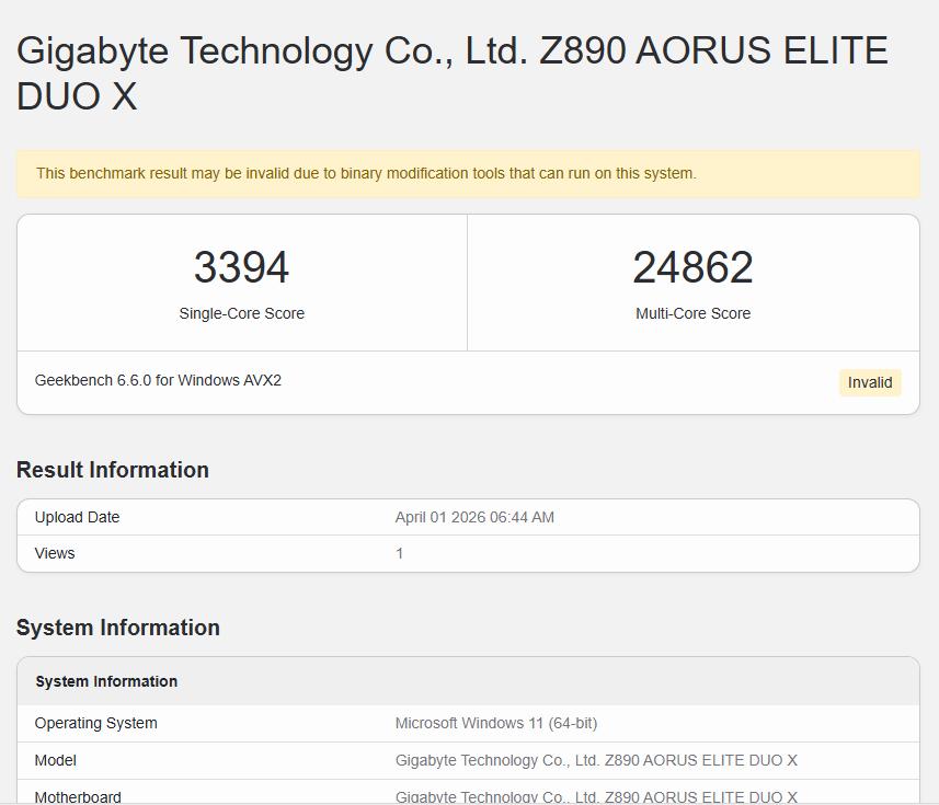 ▲LV3 Extreme Mode下,GeekBench6单核心和多核心评分分别为3394和24862,相比全默认设置提升明显。