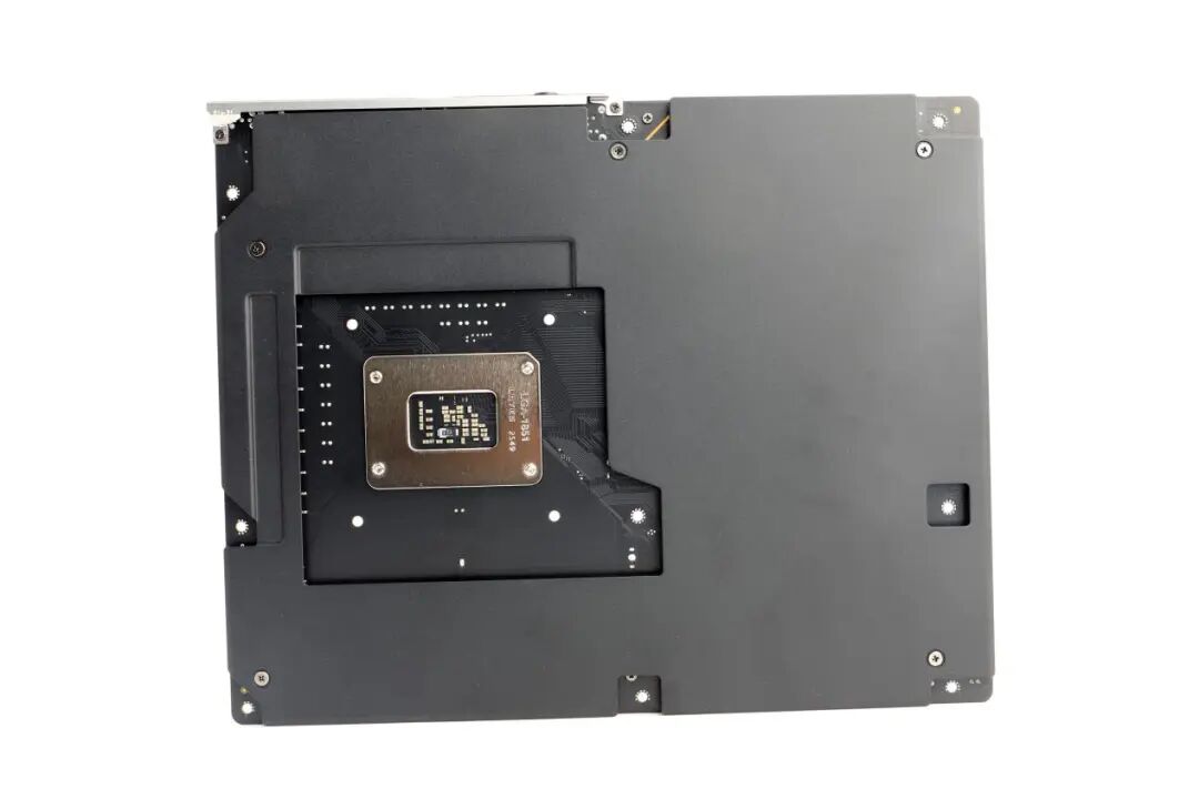 ▲该主板背面配备了一块全覆盖式PCB金属背板,能强化PCB板的结构稳固性,有效避免长期使用后的变形问题。