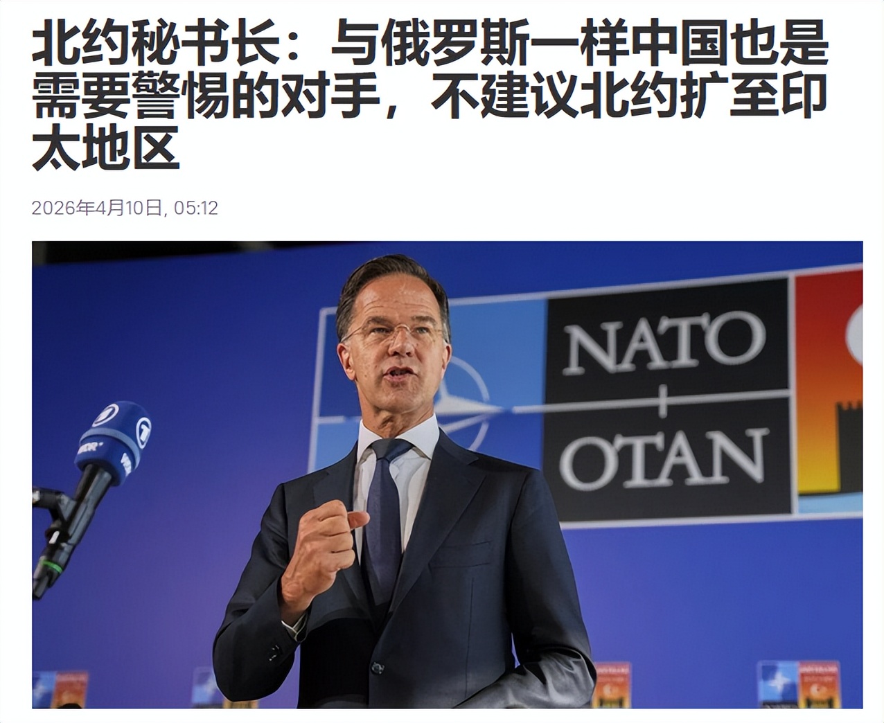 然而,特朗普2025年再度执政后,这一进程戛然而止。2026年4月初,吕特在布鲁塞尔北约总部明确表态:"北约是北大西洋区域组织,不应扩大到印太地区。我们可与印太伙伴合作,但绝不能成为跨区域军事同盟。"这一言论被视为北约战略的重大转向。吕特的转变极具标志性。作为荷兰前首相、典型"亲美派",他2024年接任秘书长时被视为美国意志的执行者。如今却公开否定北约"亚太化",与特朗普政府施压直接相关。特朗普多次抨击北约"过时、低效",要求欧洲盟国承担更多军费,同时推动美国战略重心转向印太,却反对北约介入亚太,担心欧洲分散美国资源。更关键的是,美伊冲突爆发后,欧洲盟国普遍拒绝参战,特朗普公开怒斥北约为"纸老虎",威胁"重新评估北约价值"甚至退出,迫使吕特紧急调整立场安抚美国。