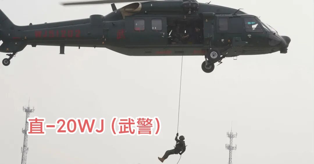 武警版直-20(Z-20WJ)武警专用性能上于陆航版基础运输型直-20保持一致,作为武警直升机支队的重要装备,直-20 极大提升了武警部队在反恐维稳、抢险救灾及边境管控中的立体机动能力。其宽敞的舱室设计便于特战队员及装备的快速索降与撤离,是构建武警“空中铁拳”的关键平台。
