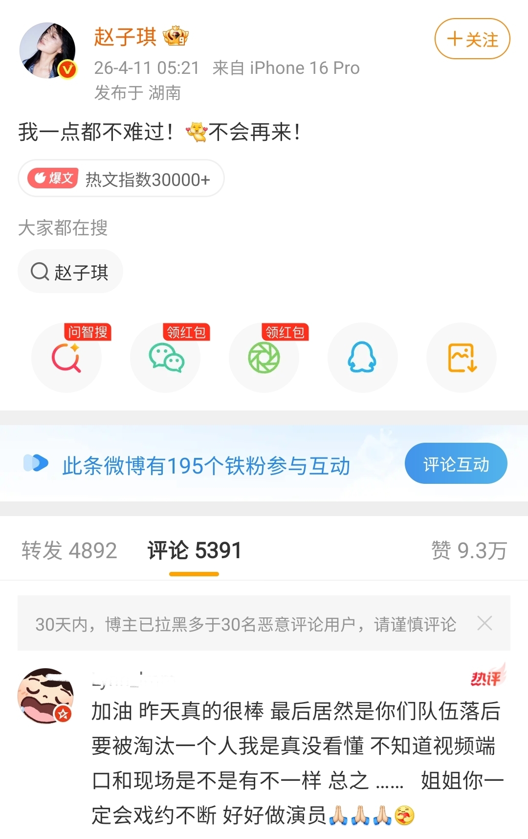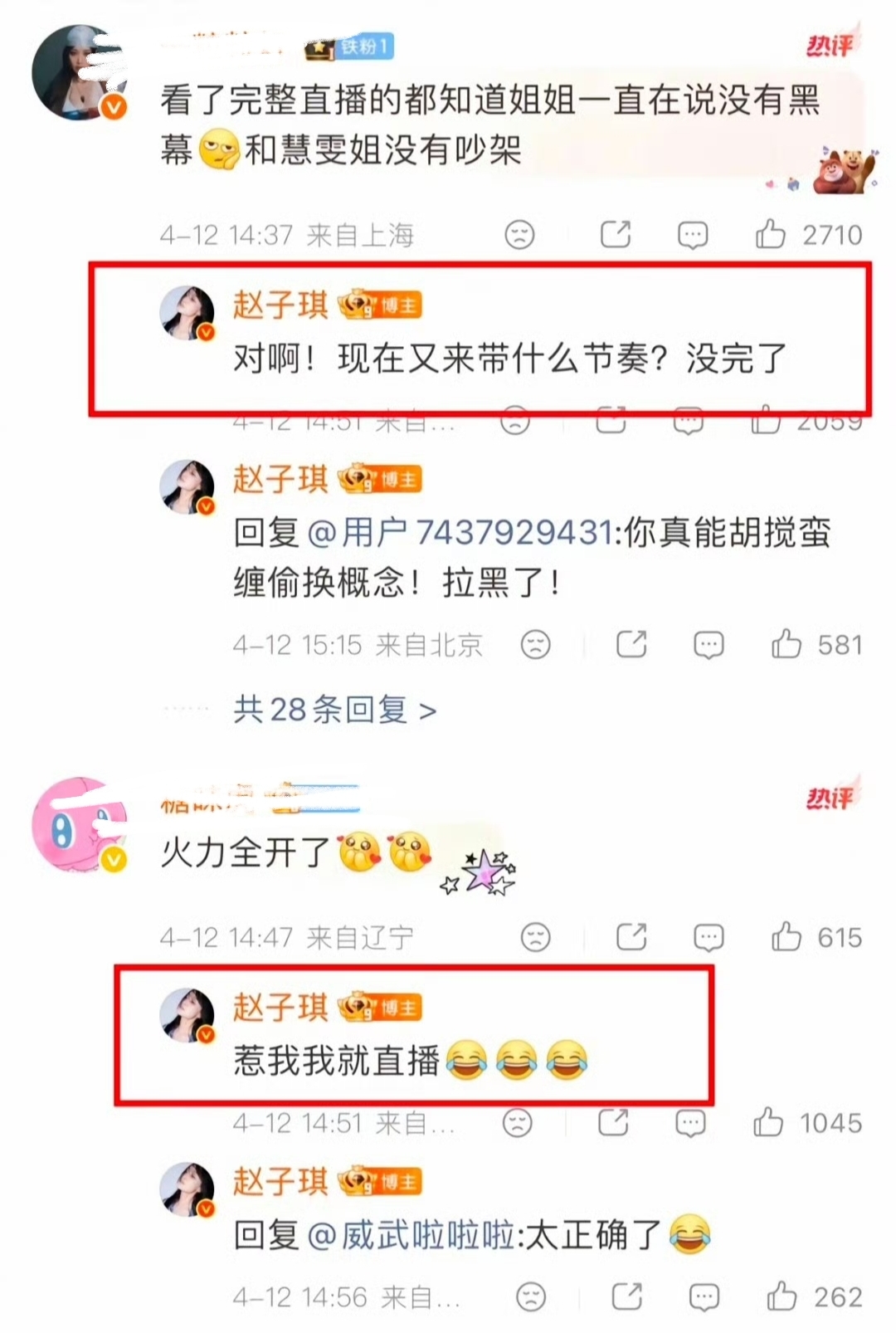 更狠的还在后面,赵子琪直接放了狠话,明明白白表示有人一直在不依不饶地搞她,最后一句“是逼我爆所有的料吗?”