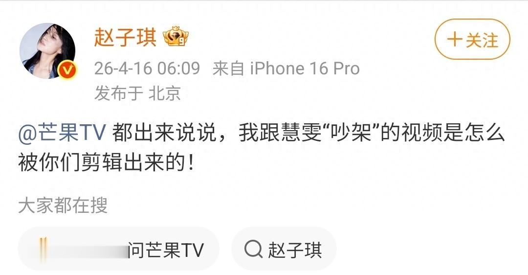 赵子琪的原话是:“都出来说说,我跟慧雯吵架的视频是怎么被你们剪辑出来的!”