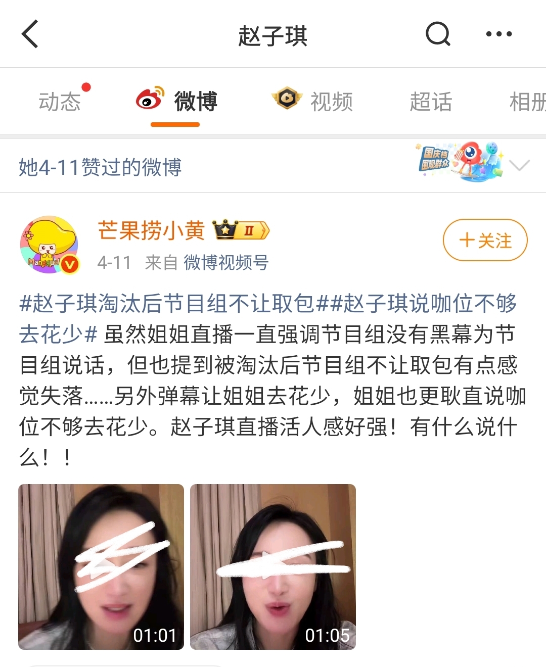 女明星赵子琪在个人账号点名芒果台,威胁对方别逼自己,不然自己就爆出所有的料。