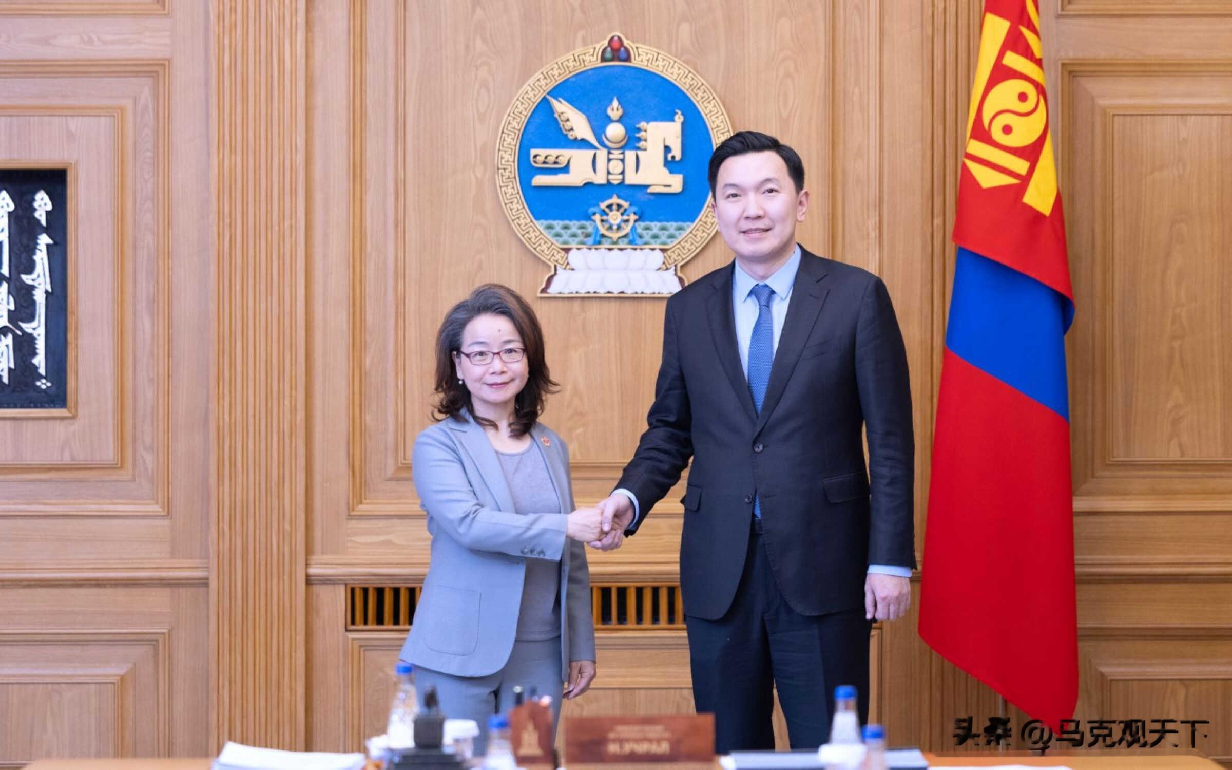 据我驻蒙使馆与蒙通社综合消息,4月15日蒙古新总理乌其尔勒会见我大使沈敏娟,就中蒙关系交换意见。