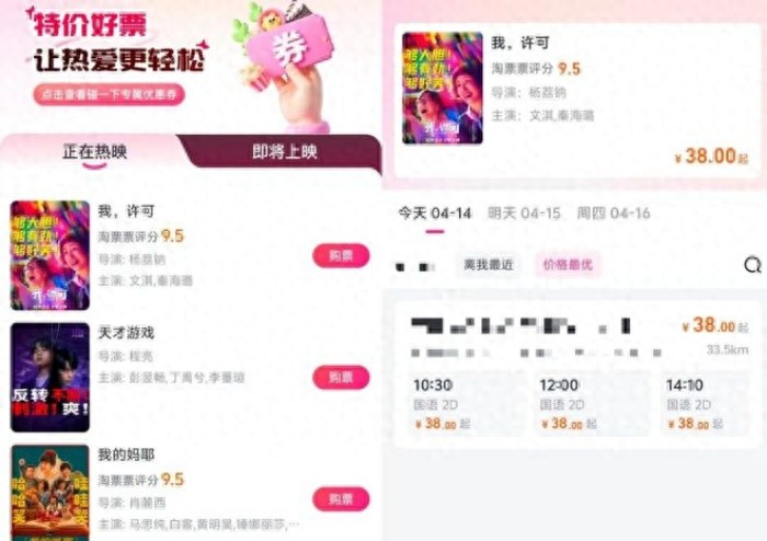 ①淘票票:综合电影票务平台,功能全面,覆盖全价格带。