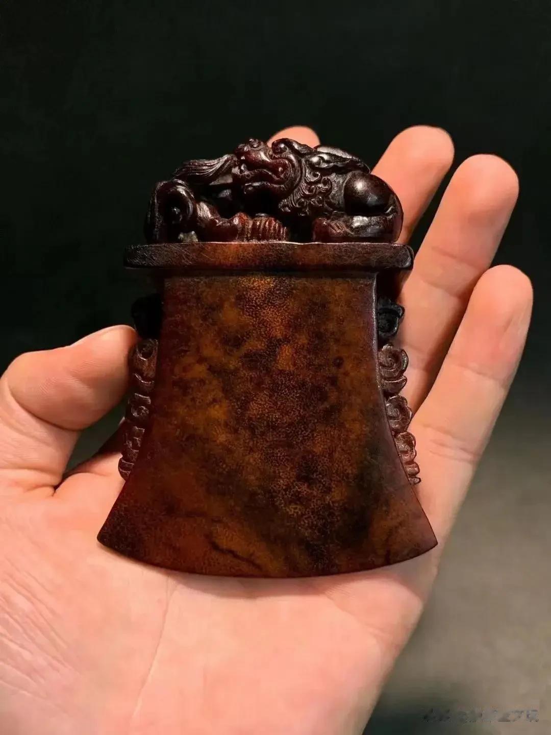 这种犀角大家见的多了,常常是那种黑白花的感觉,颜色很杂。