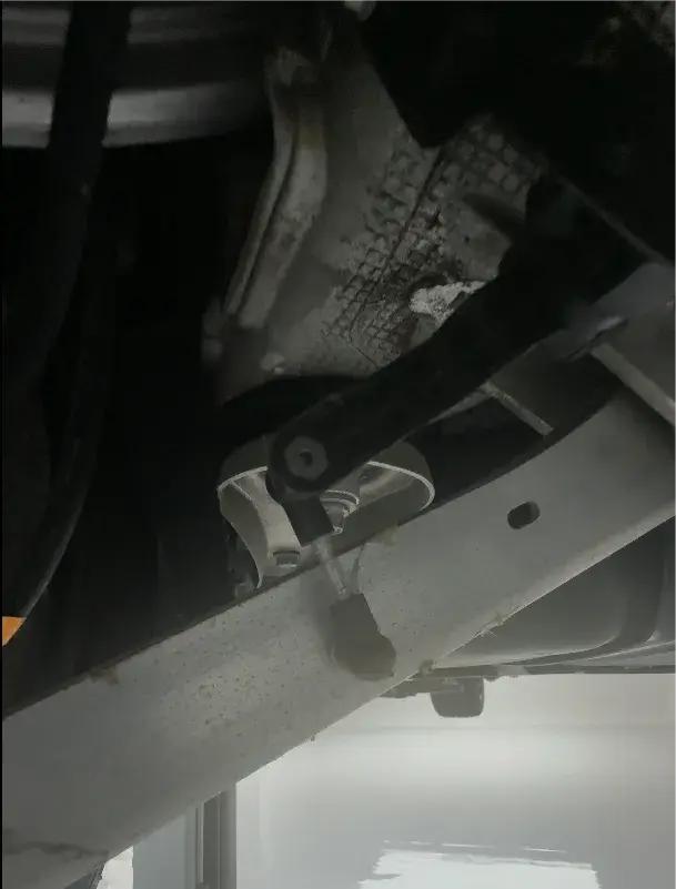 再看一个细节,两车的转向横拉杆都在轮心的前侧,转向横拉杆前置,轮胎受到侧向力情况下,瞬态的不足转向度更大,因此在相同的极限条件下,可以将舒适性液压衬套和操控衬套的刚度和动刚度做的更低,这样可以保证更多的舒适性和NVH,也就是提高日常乘坐的豪华感。而且CT6舒适衬套是液压的,吸震能力更好,这都是舒适性的保证。