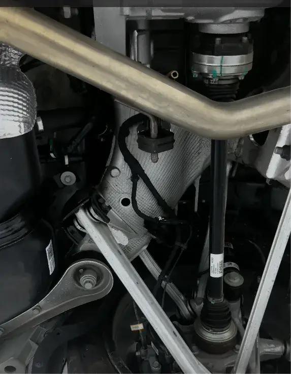 后轴还配置了车身高度传感器,可以作为基础信号输入给ESP和MRC悬架,使得电子稳定系统和减振能够更好地工作,因为车身高度的基础信号越精准,ESP滑移控制越精确。这样当你坐车里遇到一些坑洼时整个身体会保持更平稳。