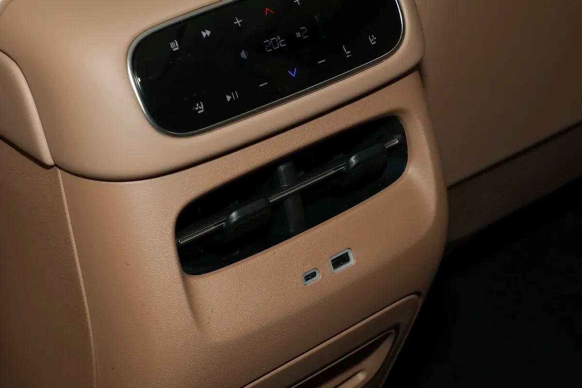 内饰用料也超出预期,座椅采用Nappa真皮材质,触感柔软细腻,支撑性十足 。主副驾驶都支持电动调节,还有女王座椅功能,长途开车时能找到特别舒适的姿势。我选的浮光灰内饰,色调温柔又高级,搭配256色氛围灯,晚上开车氛围感直接拉满 。门板、中控台等经常触碰的地方,都用了软质材料包裹,手感舒适 。细节配置也很到位,50W无线快充、后排USB/Type-C接口、电动尾门带记忆、无钥匙进入、远程启动,日常用车特别方便,可以说对于家用来说,已经是精装了。