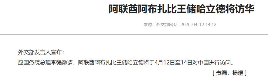 就在外界猜测阿联酋会如何应对时,外媒报道阿布扎比王储哈立德计划访问中国,随后中国外交部证实,哈立德将于4月12日至14日对中国进行访问,这一消息立即引发全球关注。
