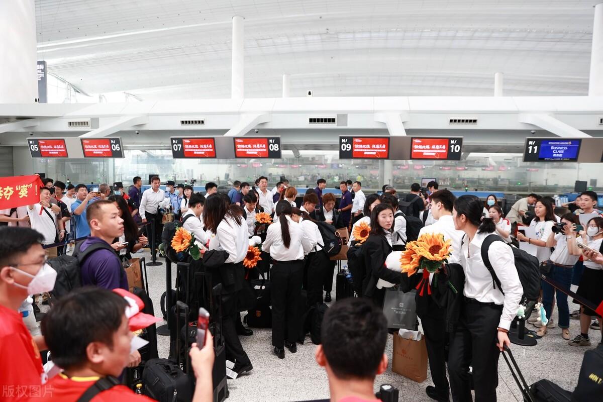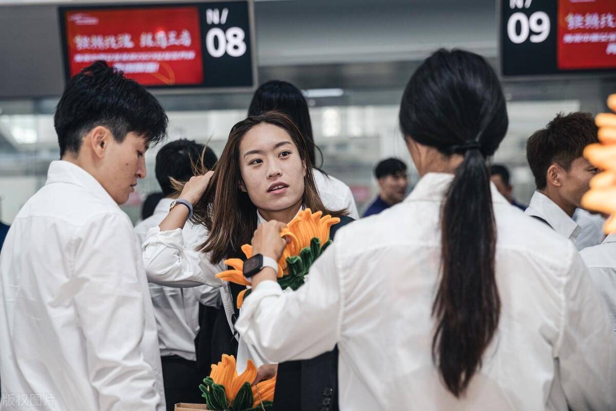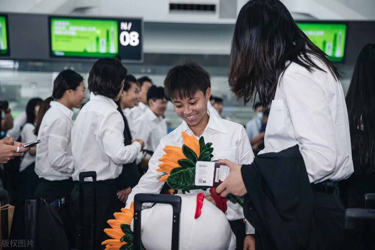 你永远可以相信的她们出发了,严肃着重,笑容不惧,但是花花们的片片爱意[捂脸]似乎有点可惜了。女足姑娘们,[玫瑰][玫瑰][玫瑰]一路顺风,满载而归。