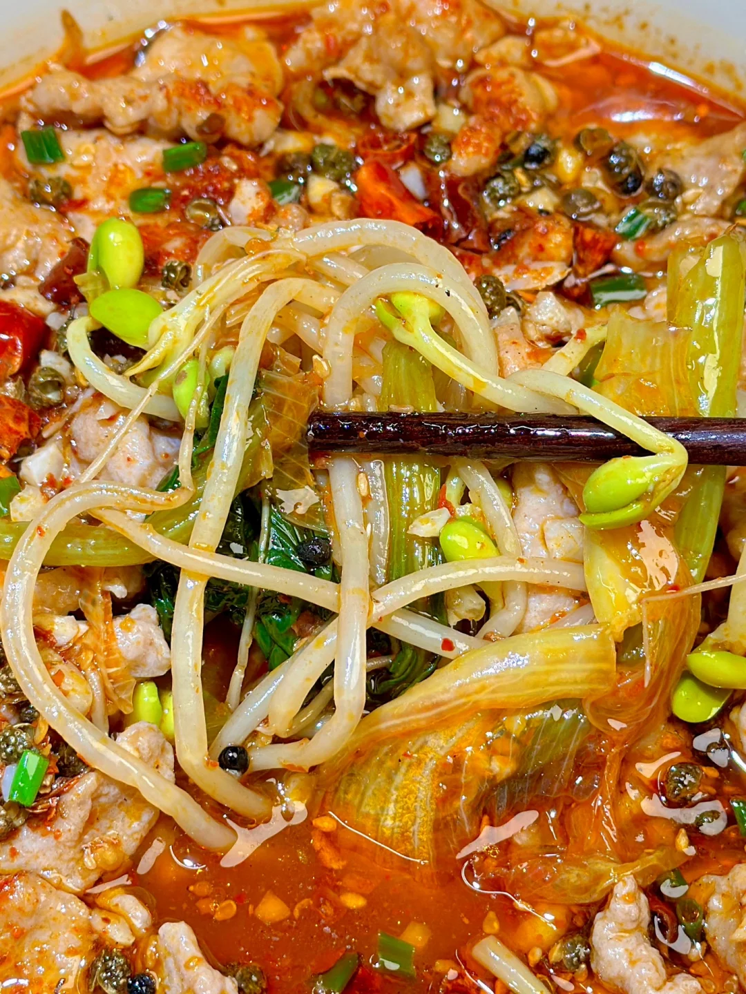 2️⃣炒香葱姜蒜下2勺郫县豆瓣酱(火锅底料也可以),炒出红油倒入小半锅水煮沸加1勺生抽1勺蚝油调味