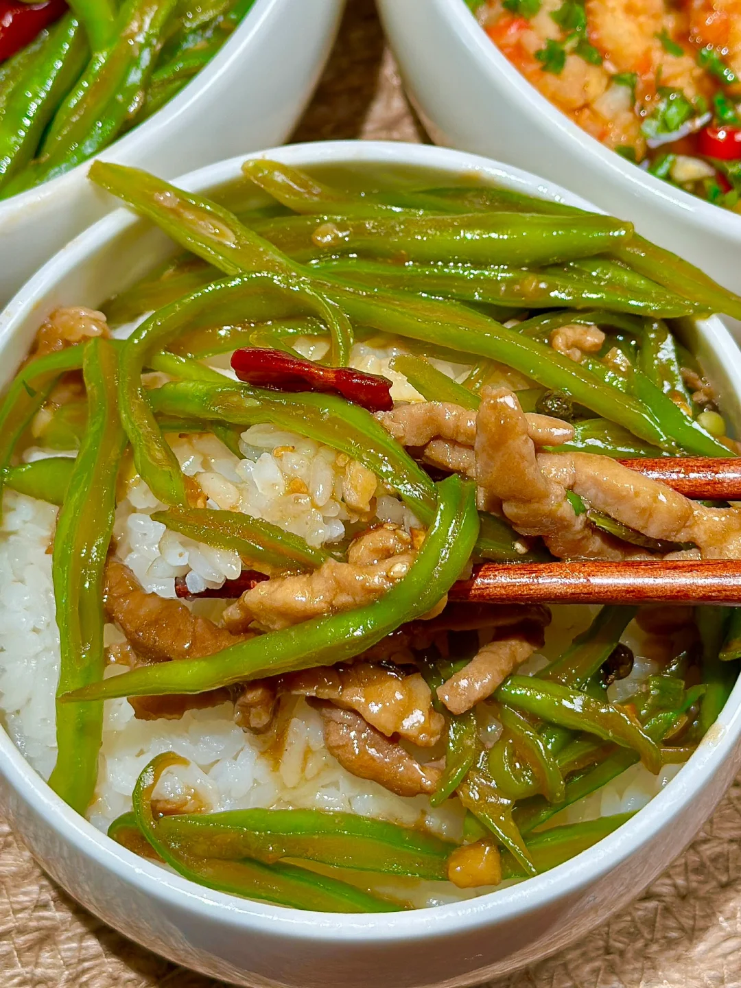 ❷香辣豆角炒肉丝