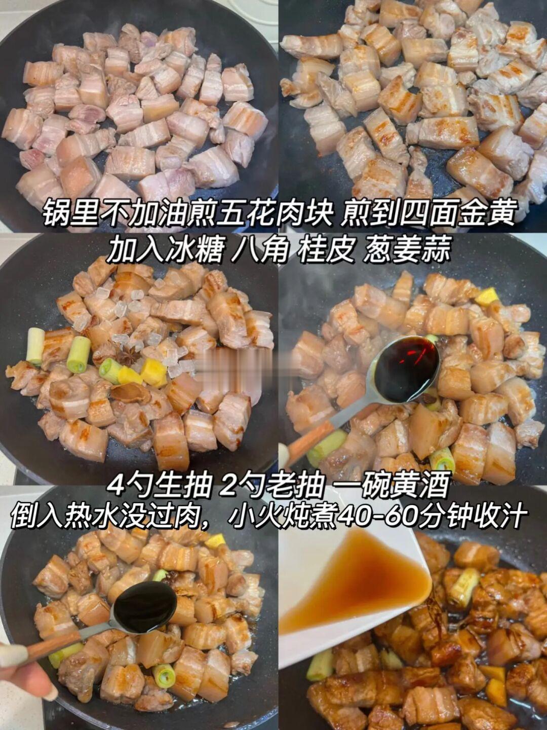 红烧肉:猪五花 葱姜 八角 桂皮 冰糖