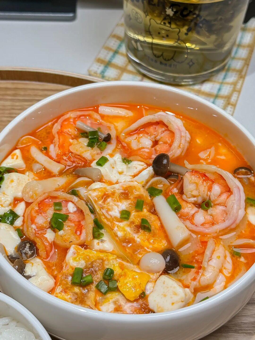 ❷鲜虾菌菇豆腐汤