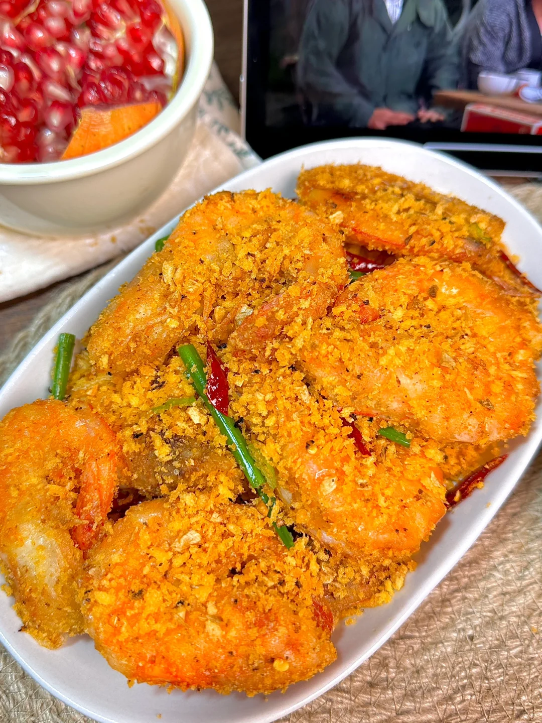 -大虾 面包糠 豆豉 小葱干辣椒