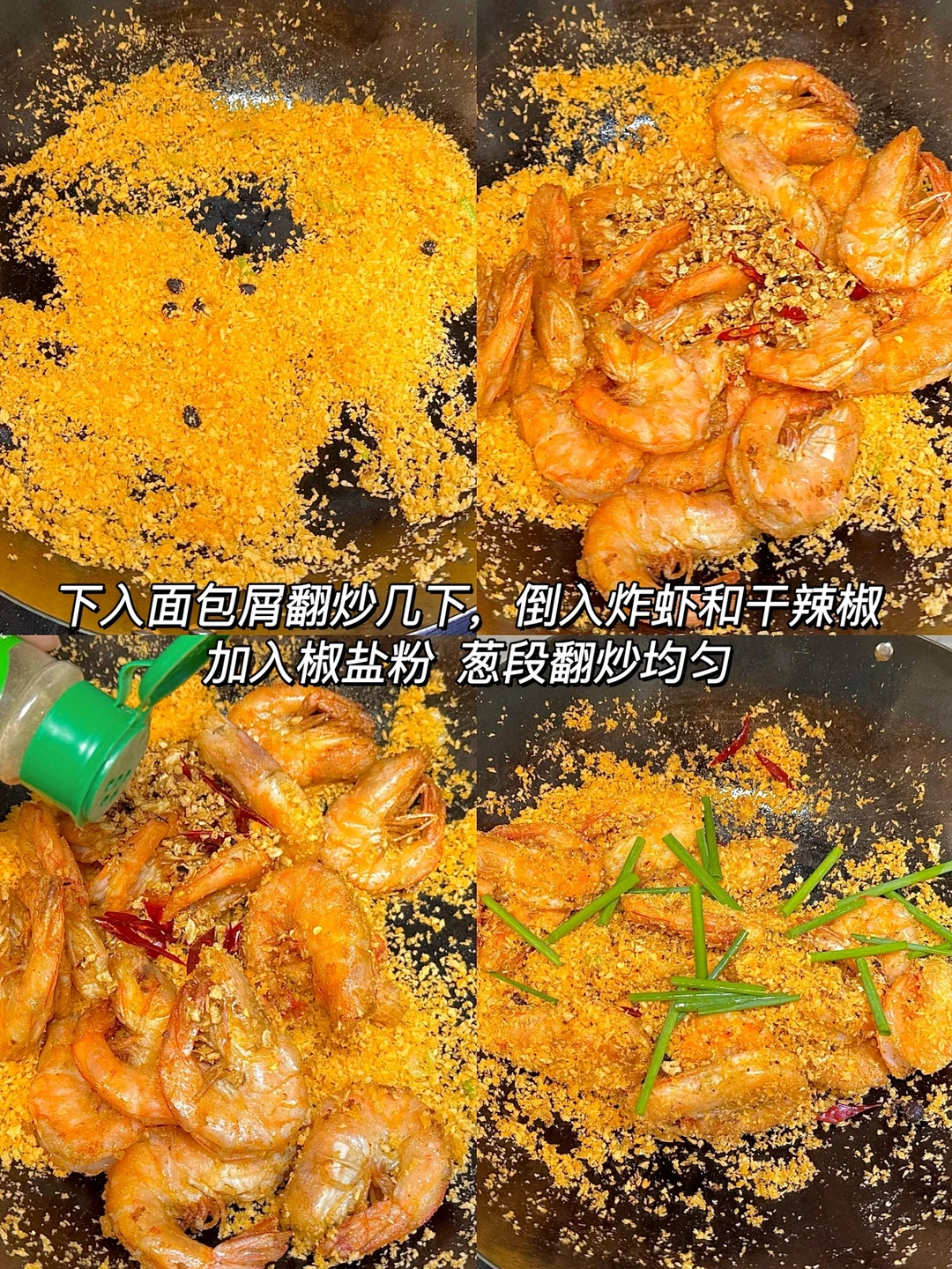 看似复杂的避风塘做法没想到做起来如此简单,炸过的大虾酥酥脆脆的连壳都可以嚼烂,裹着面包糠吃起来也太香啦~
