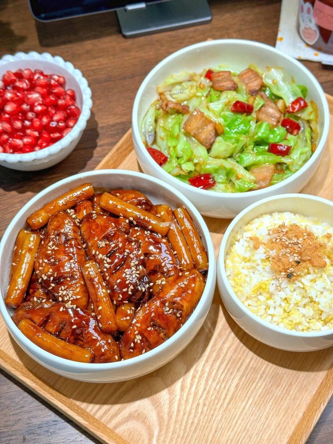 🥢一人食| 年糕可乐鸡翅🍖手撕包菜