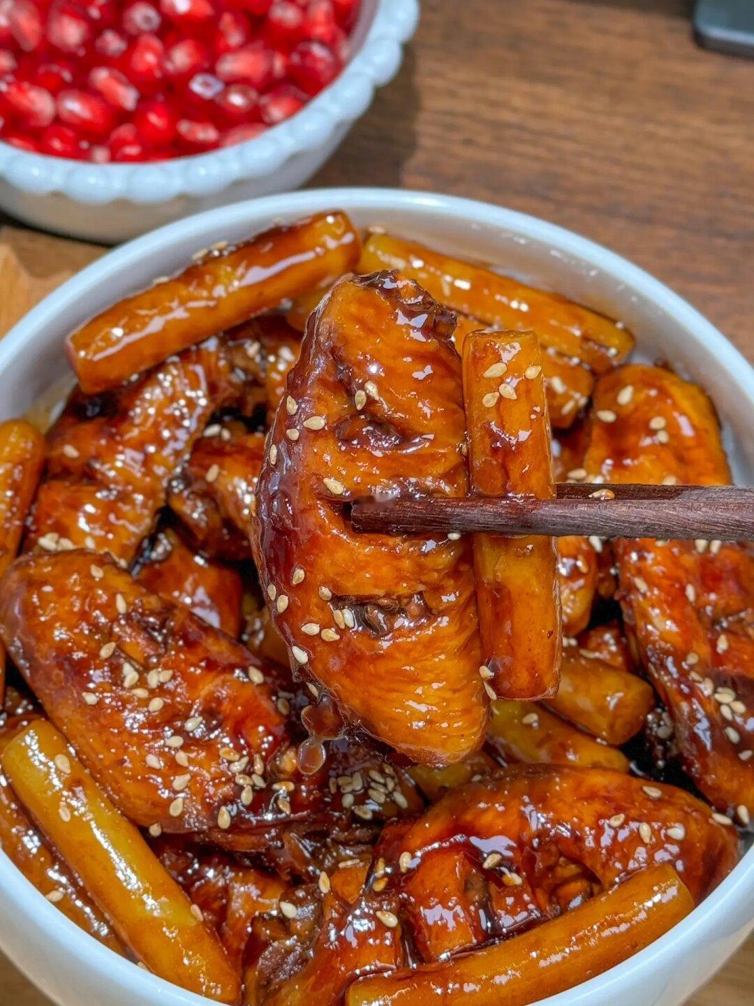 😉好喜欢鸡翅里的年糕,糯叽叽的好好吃~