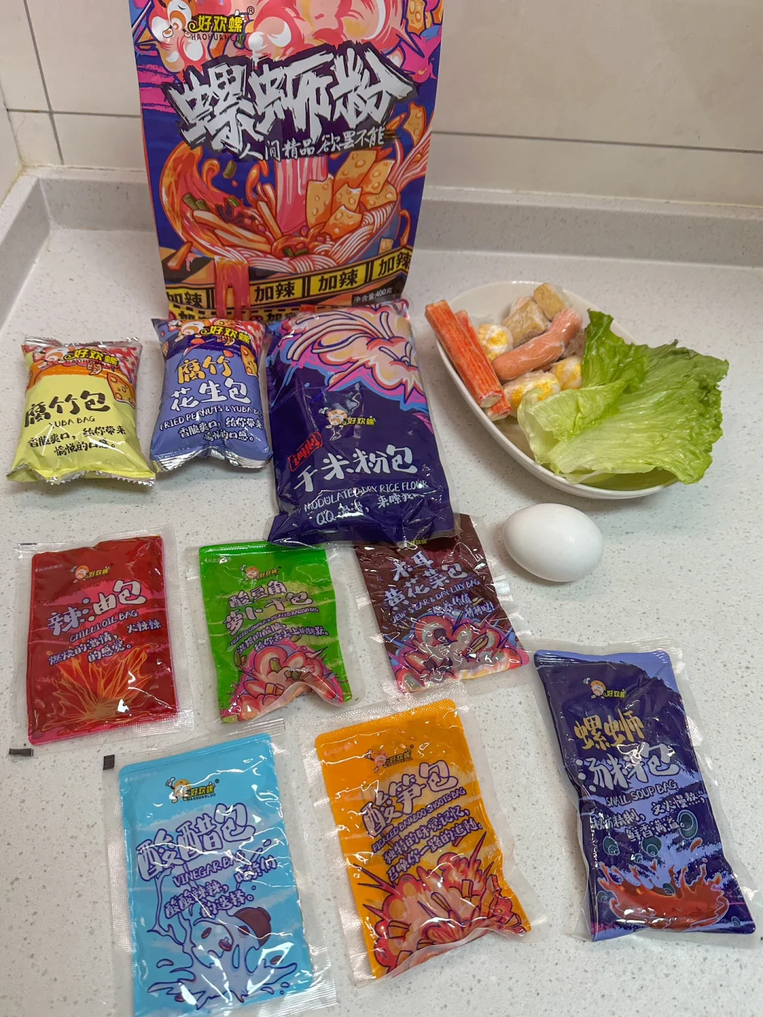 螺蛳粉 火锅丸子 青菜 鸡蛋