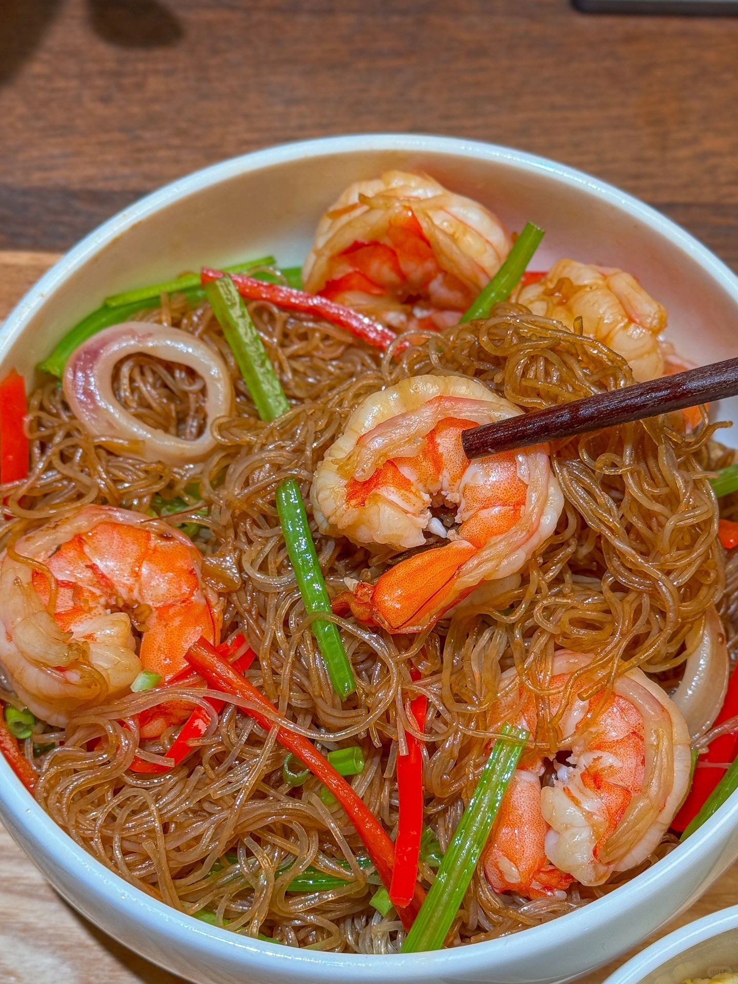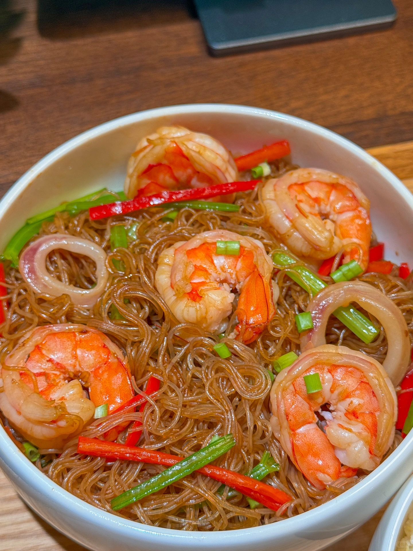 粉丝 大虾 鱿鱼 小芹菜 红彩椒
